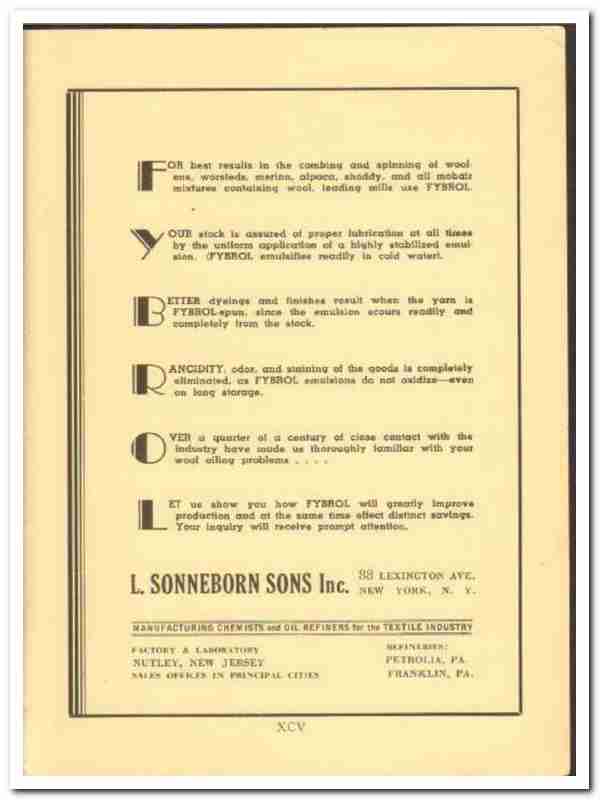 L Sonneborn Sons Inc 1938 vintage chemical ad Fybrol wool textile