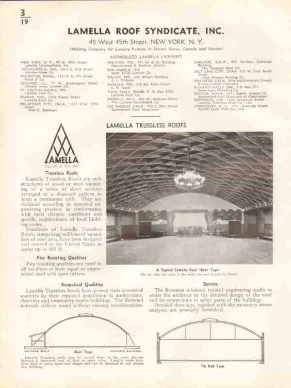 Lamella Roof Syndicate Inc 1938 Vintage Catalog Trussless Bent Tie Rod