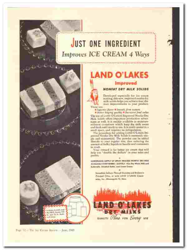 Land O Lakes Creameries Inc 1949 vintage ice cream ad Dry Milk Solids