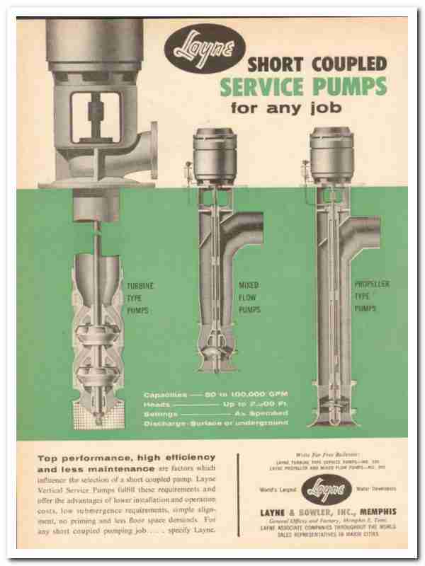 Layne Bowler Inc 1959 Vintage Ad Oil Field Service Pumps Short Coupled