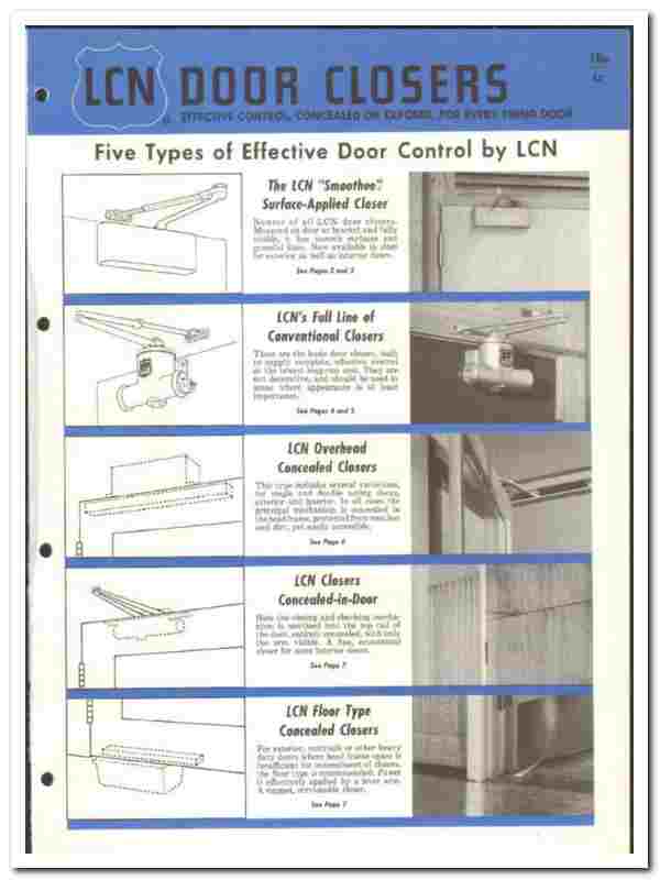 Products include LCN 'Smoothee' Surface-Applied Closer, LCN Conventional Closers, LCN Overhead Concealed Closers, LCN Closers Concealed-In-Door and the LCN Floor Type Concealed Closers, all are fully featured.