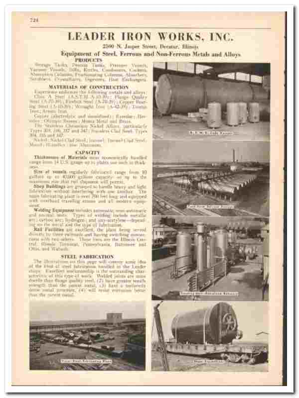 Original 1942 industrial metal trade vintage catalog for LEADER IRON WORKS, INC. Main office and plant were located at 2500 North Jasper Street, Decatur, IL.