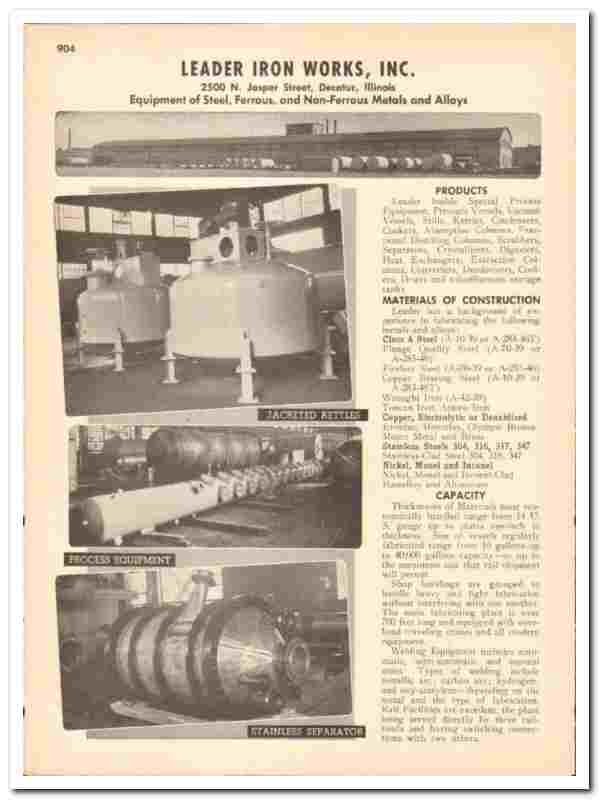 Original 1948 industrial trade vintage catalog for the LEADER IRON WORKS, INC. Main office and plant were located at 2500 North Jasper Street, Decatur, IL.