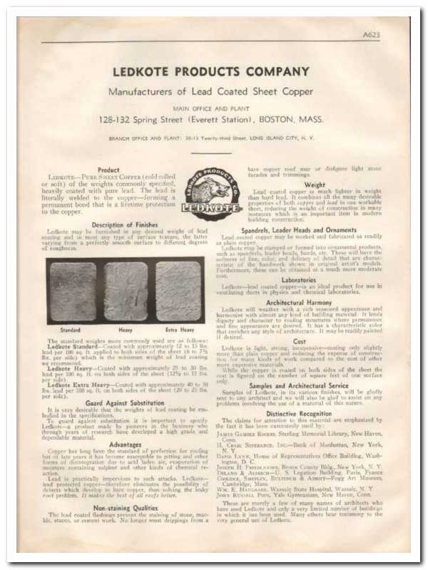 Ledkote Products Company 1933 Vintage Catalog Roof Lead Coated Copper