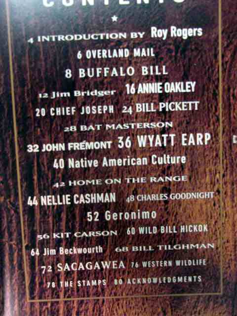 Hard covered book titled LEGENDS OF THE WEST A COLLECTION OF U.S. COMMEMORATIVE STAMPS, with introduction by Roy Rogers, 1993, 80 pages. This is for the BOOK ONLY, as no stamps are included. Relive the excitement and drama of the Old West with this exclusive book. This handsome hardbound book contains hundreds of authentic photos, artwork and text depicting such legendary subjects as Wyatt Earp, Geronimo, Buffalo Bill, Annie Oakely, Wild Bill Hickok and 15 others. This exquisite book is in VG+ condition, pages clean and intact, and the binding is tight. Don't miss the opportunity to add it to your library!