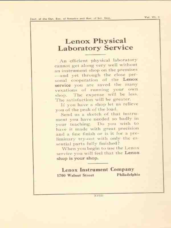 lenox instrument company 1922 physical laboratory service vintage ad