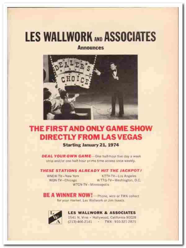 les wallwork associates 1973 dealers choice game show media vintage ad