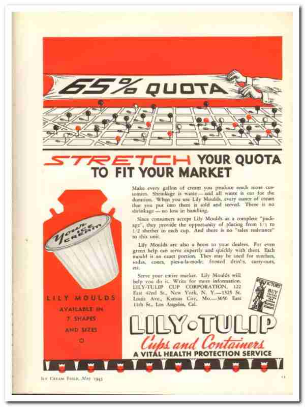 Lily-Tulip Cup Corp 1943 vintage ad ice cream stretch quota Moulds