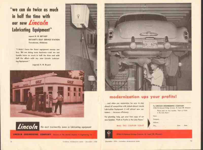 lincoln engineering co 1956 bryants gulf service station vintage ad