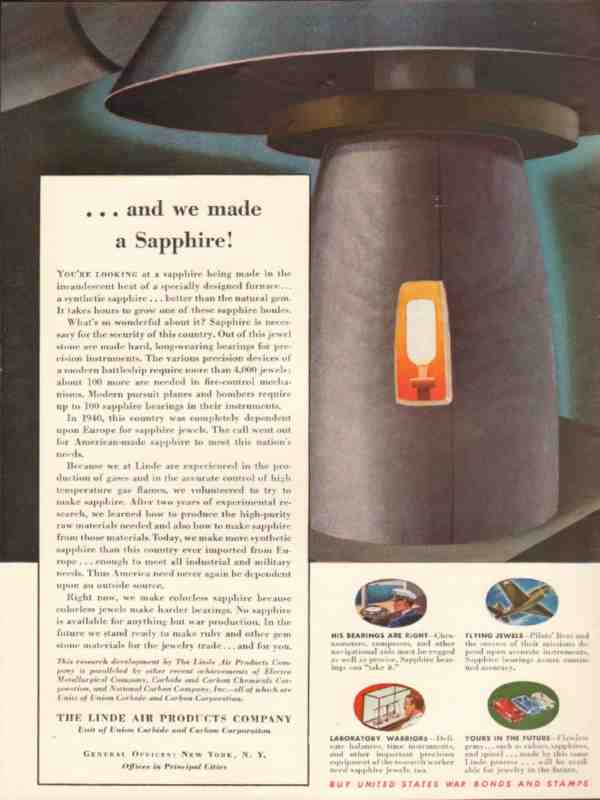 linde air products co 1943 we made a sapphire synthetic vintage ad