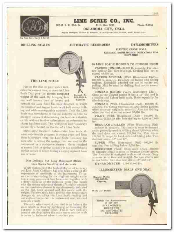 Original 1944 Oil and Gas trade vintage catalog for the LINE SCALE COMPANY, INC. Main office and plant was located at 907-11 SE 29th Street, Oklahoma City, OK.