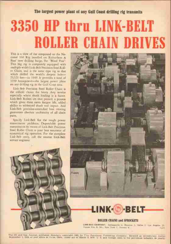 Link-Belt Company 1950 Vintage Ad Oil Drilling Roller Chain Impact