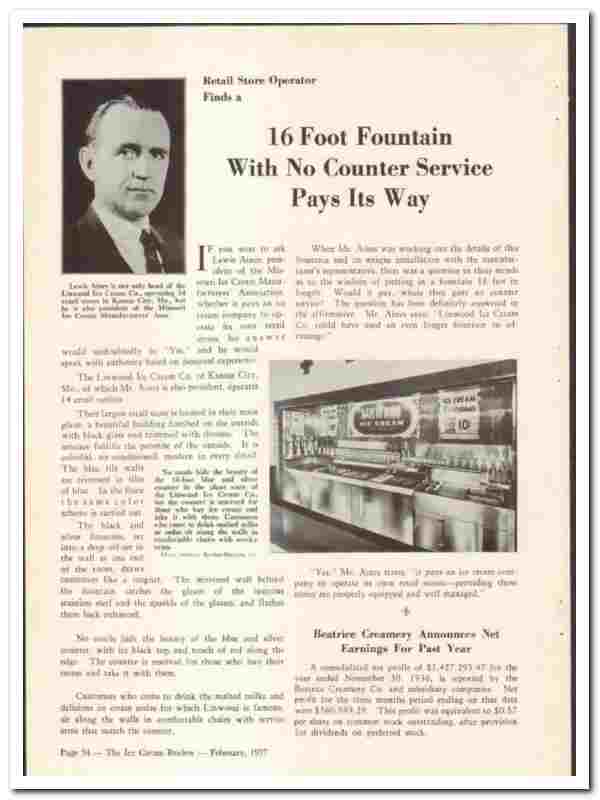Linwood Ice Cream Company 1937 vintage dairy article fountain Aines
