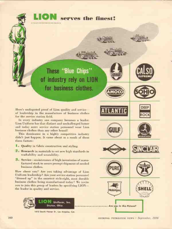 Lion Uniform Inc 1956 Vintage Ad Gasoline Business Clothes Blue Chip