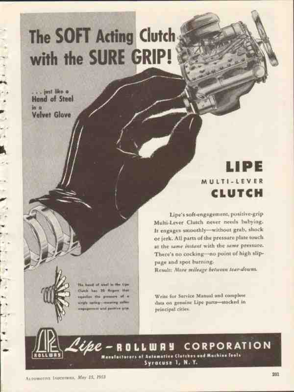 lipe rollway corporation 1953 soft acting clutch sure grip vintage ad