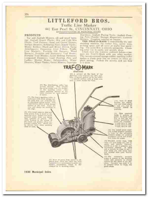 Littleford Bros Inc 1930 vintage road catalog traffic line marker