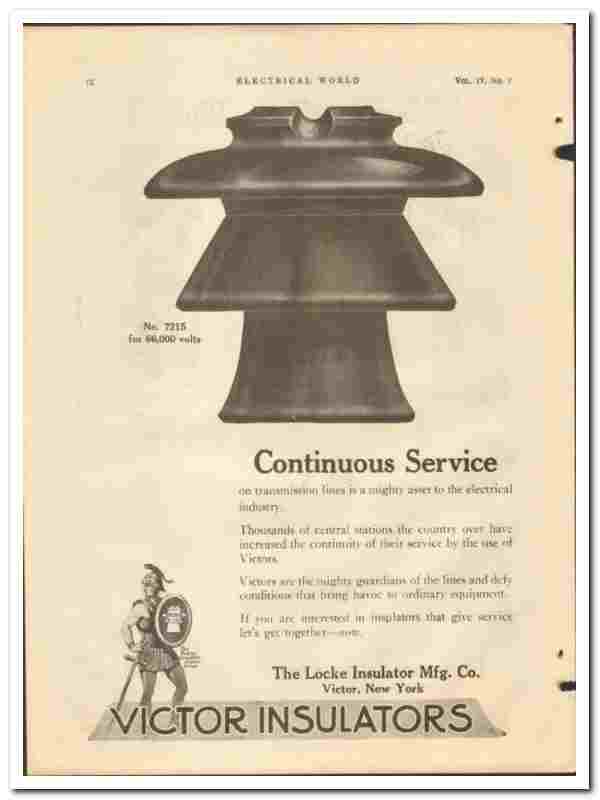 Locke Insulator Mfg Company 1921 vintage electrical ad Victor service