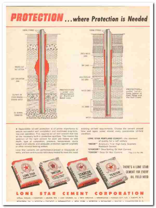 Lone Star Cement Corp 1959 Vintage Ad Oil Field Well Protection Needed