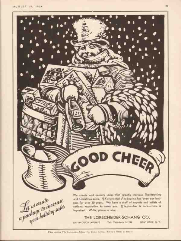 lorscheider-schang company 1934 good cheer packaging vintage ad