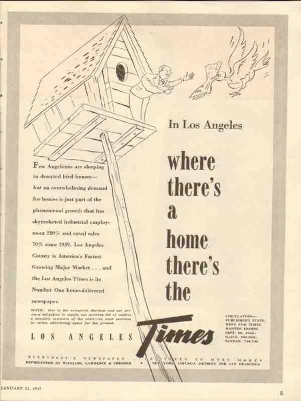los angeles times 1947 where theres a home newspaper media vintage ad