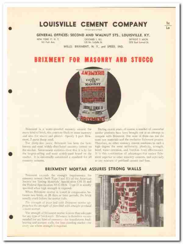 Louisville Cement Company 1954 Vintage Catalog Brixment Masonry Stucco