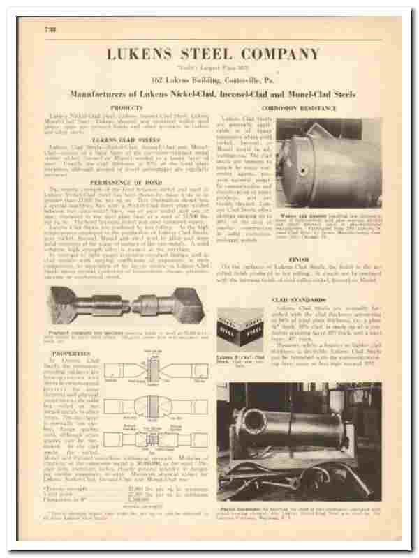 Manufacturers of Lukens Nickel-Clad, Inconel-Clad and Monel-Clad Steels. 'Worlds Largest Plate Mill'.