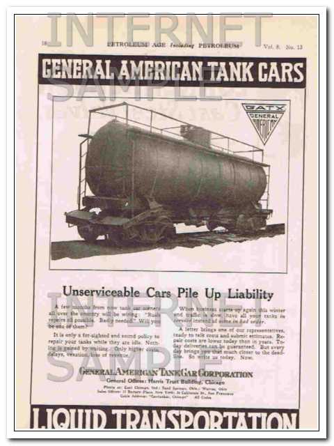 Original oil and gas trade magazine vintage ad for THE LUNKENHEIMER COMPANY of Cincinnati, OH. Oil Pipeline Cast Steel Valves. High Grade Engineering Specialties. Unique 1921 old petroleum refining industry valve equipment magazine advertisement. (The scan shows a slight pink tint not in the actual ad). On the reverse side is an ad for GENERAL AMERICAN TANK CARS of Chicago, IL. Unserviceable Cars Pile Up Liability. Railroad tank cars Liquid Transportation. Unique 1921 old petroleum refining industry magazine advertisement. Slight crease, but would still matte and frame marvelously. Nice graphics. Approximate size 9 x 12 inches.