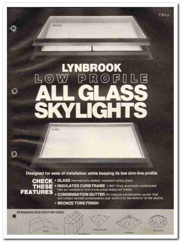 Lynbrook Products Inc 1982 Vintage Catalog Skylights Glass Low Profile