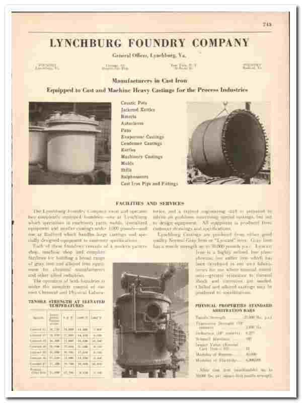 Original 1942 industrial trade vintage catalog for the LYNCHBURG FOUNDRY COMPANY. Main office was located in Lynchburg, VA. The foundries were located in Lynchburg, VA and Radford, VA.