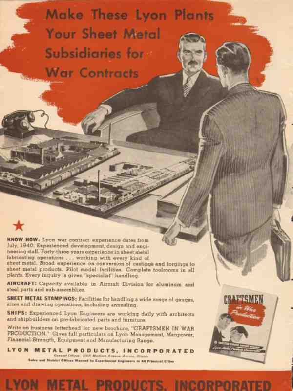lyon metal products inc 1943 sheet metal war contracts ww2 vintage ad