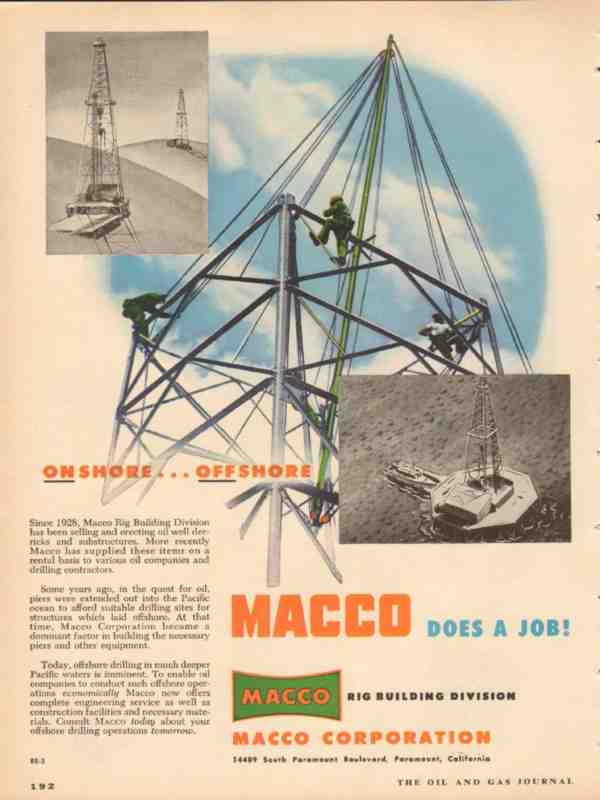 MACCO Corp 1953 Vintage Ad Oil Rig Building Onshore Offshore Job