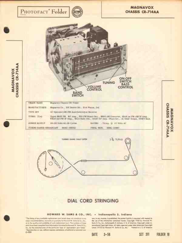 magnavox chassis cr-714aa am fm radio receiver sams photofact manual