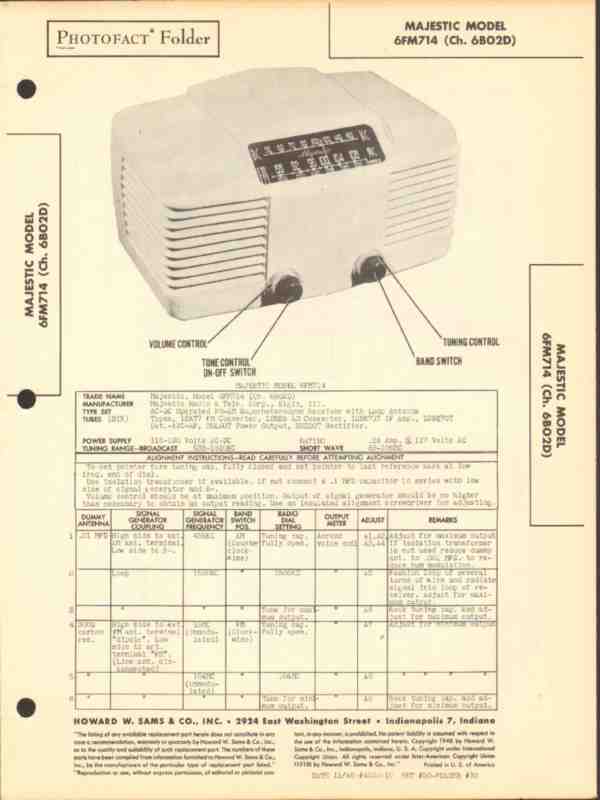 majestic model 6fm714 am fm radio receiver sams photofact manual
