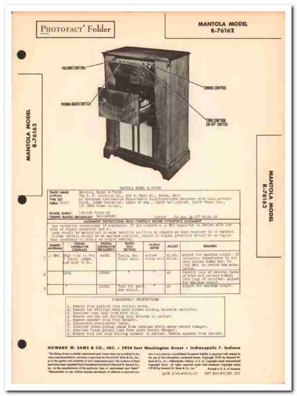 mantola model r-76162 6-tube am radio phonograph sams photofact manual