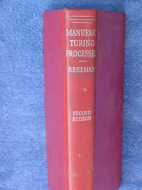 Hard covered book titled MANUFACTURING PROCESSES by Myron L. Begeman, Professor of Mechanical Engineering, Superintendent of Engineering Shop Laboratories, The University of Texas, Second Edition, 1947, 626 pages.
