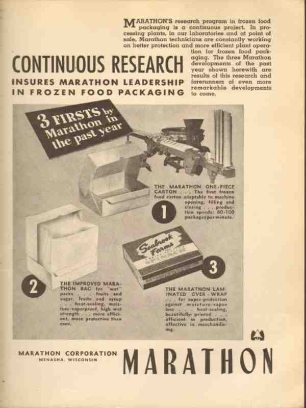 marathon corp 1946 continuous research frozen food package vintage ad