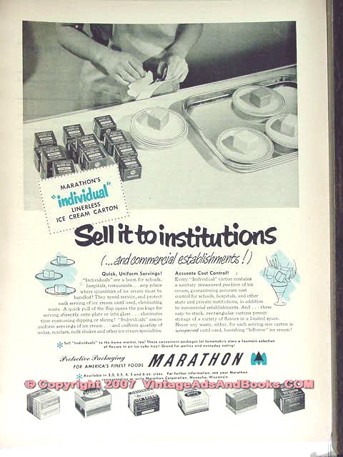 Marathon Corp 1951 Vintage Ad Ice Cream Cartons Individual Packaging