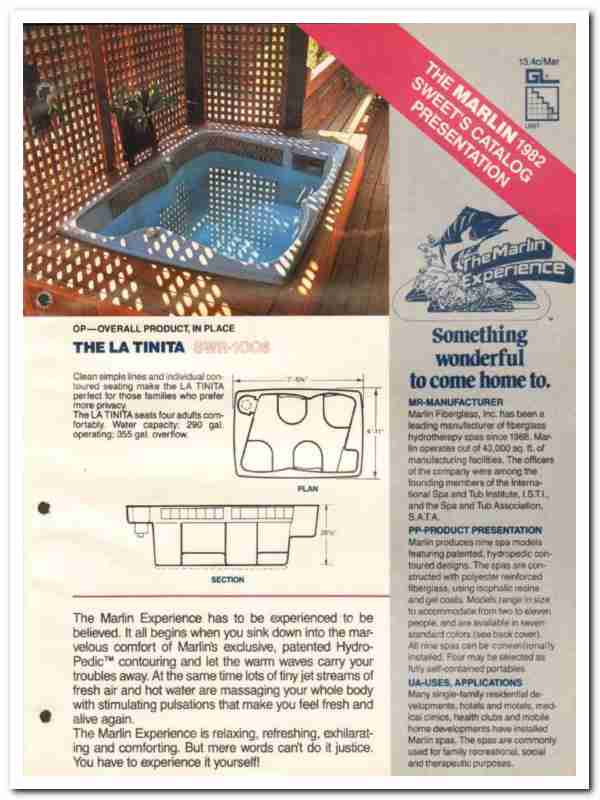 Marlin Fiberglass Inc 1982 Vintage Catalog Spa Hydropedic Hydrotherapy