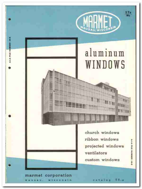Original windows trade vintage catalog for MARMET CORPORATION. Main office and plant was located in Wausau, Wisconsin. Founded in 1946.