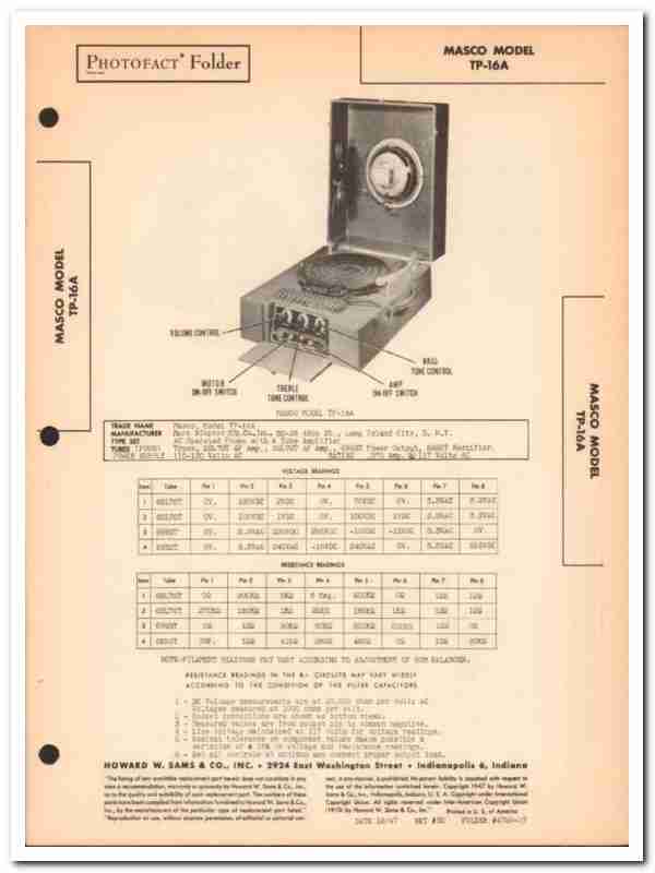 masco model tp-16a record player phonograph sams photofact manual