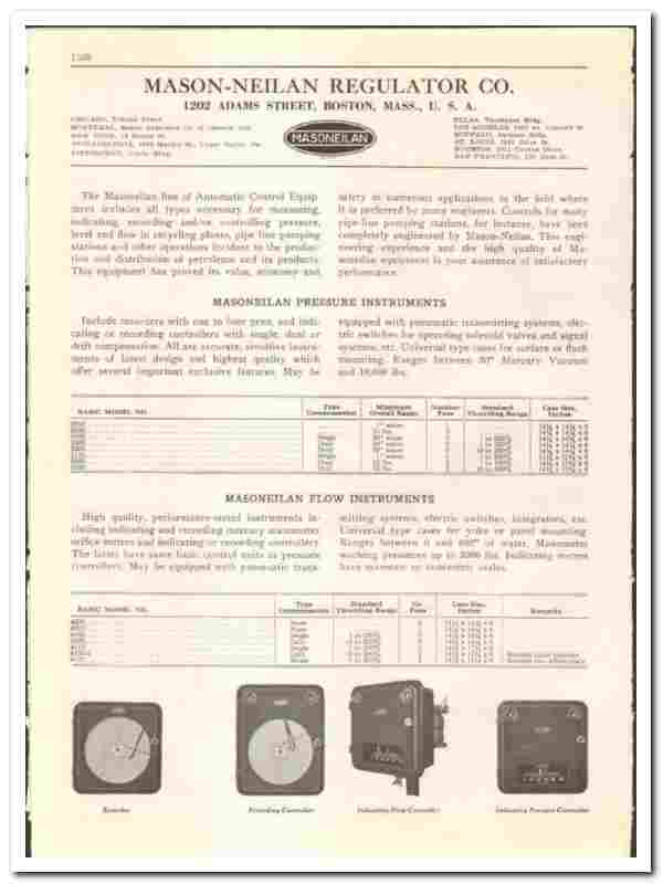 Original 1942 Oil and Gas trade vintage catalog for the MASON-NEILAN REGULATOR COMPANY. Main office and plant were located at 1202 Adams Street, Boston, MA.