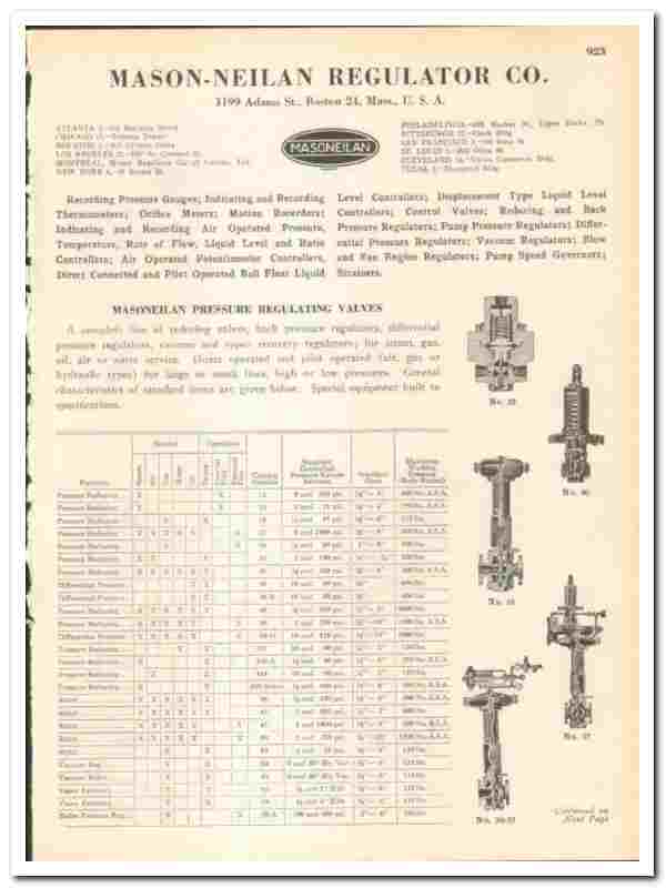 Original 1945 industrial trade vintage catalog for the MASON-NEILAN REGULATOR COMPANY. Main office and plant were located at 1199 Adams Street, Boston, MA.