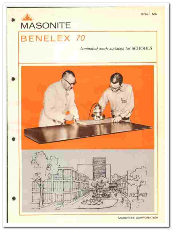 Manufacturers of Benelex 70. 'Laminated Work Surfaces for Schools'.