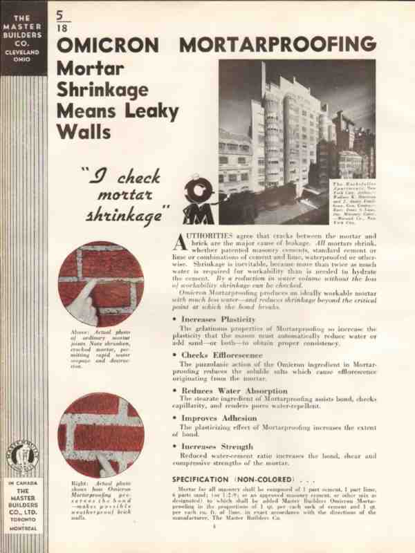 Master Builders Company 1938 Vintage Catalog Omnicron Mortarproofing