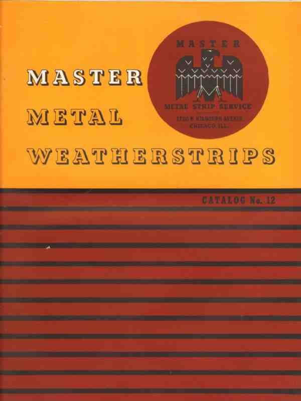 Original insulation trade vintage catalog for MASTER METAL STRIP SERVICE, INC. Main office and factory was located in Chicago, IL. Manufacturers of Metal Weatherstrips. Products featured include Weatherstrip for Windows, Doors, Thresholds, Caulking Supplies and No-Draft Sash Balance. Numerous images, illustrations, product details and architect specifications are supplied. Unbound from a large 1941 architectural catalog, this unique old twenty-two page technical brochure would display wonderful matted and framed. Nice cover graphics. A fabulous addition to your retro window & door weatherstrip library. Pages are detached and may contain a small amount of residual glue on edge. (Catalog No. 12).