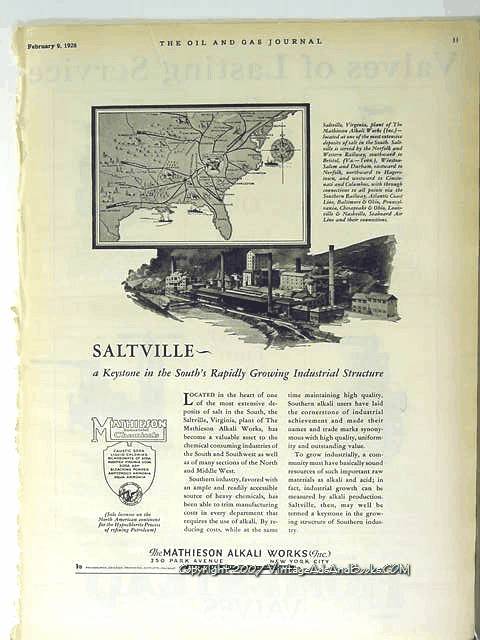 Mathieson Alkali Works 1928 Vintage Ad Saltville Industrial Chemical