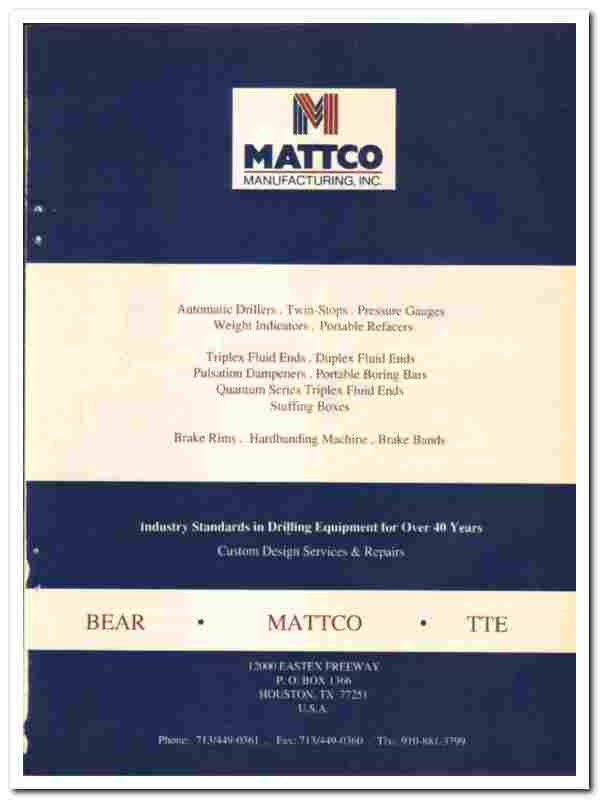 Mattco Mfg Inc 1990 vintage oil catalog oilfield drilling equipment