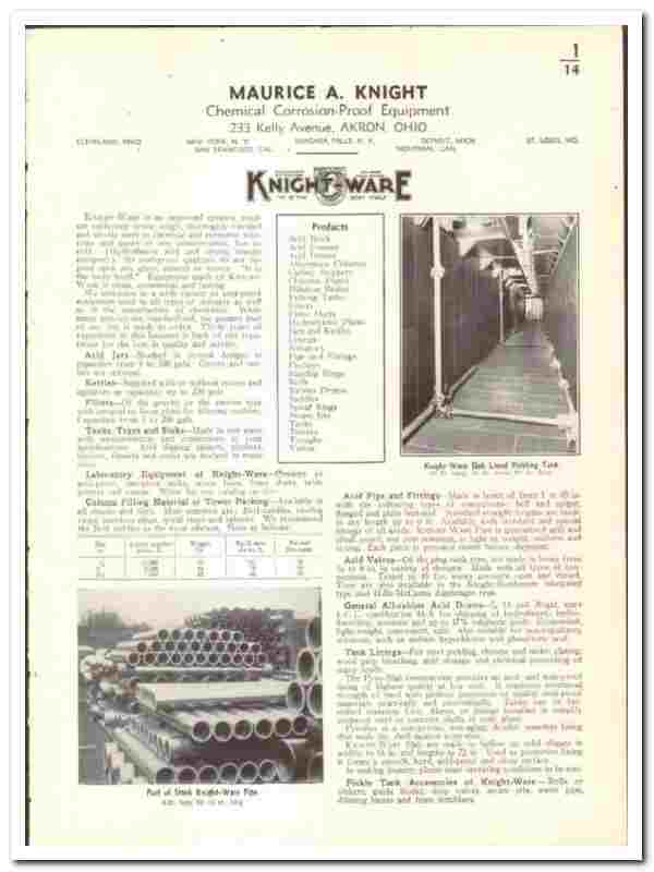 Products include Acid Jars, Kettles, Filters, Tanks, Trays & Sinks, Laboratory Equipment of Knight-Ware, Column Filling Material & Tower Packing, Acid Pipe & Fittings, Acid Valves, General All-Rubber Acid Drums, Tank Linings and Pickle Tank Accessories of Knight-Ware, all are featured.