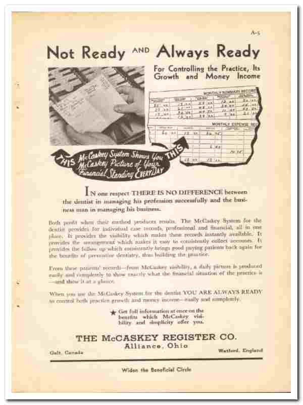 McCaskey Register Company 1938 vintage dental ad controlling practice