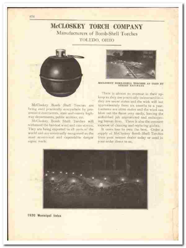 McCloskey Torch Company 1930 vintage road catalog bomb-shell signal